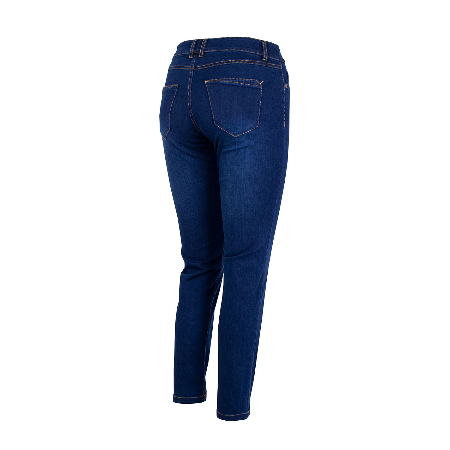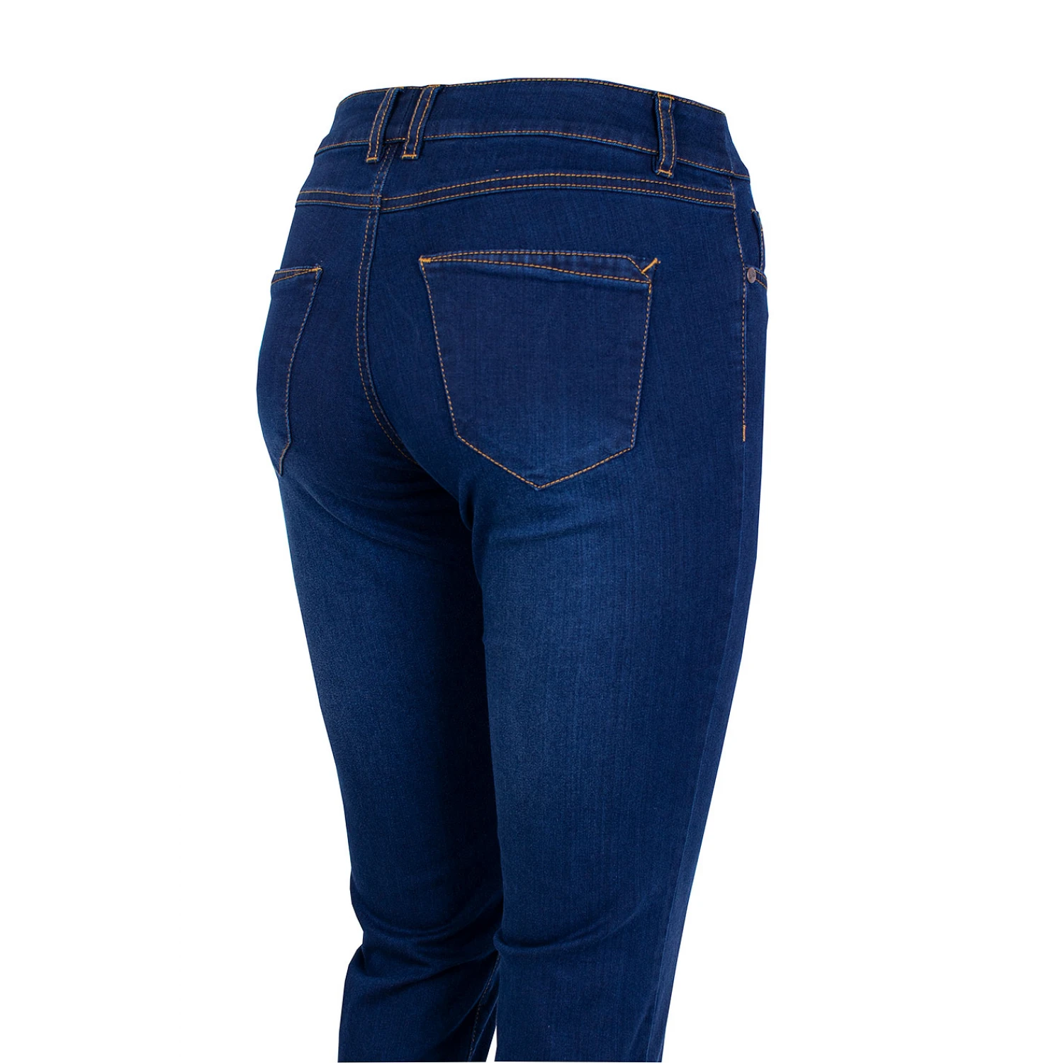 Удобни и меки дамски дънки от памук и еластан. Елегантен модел с декоративни оранжеви тегели – идеални за есента.