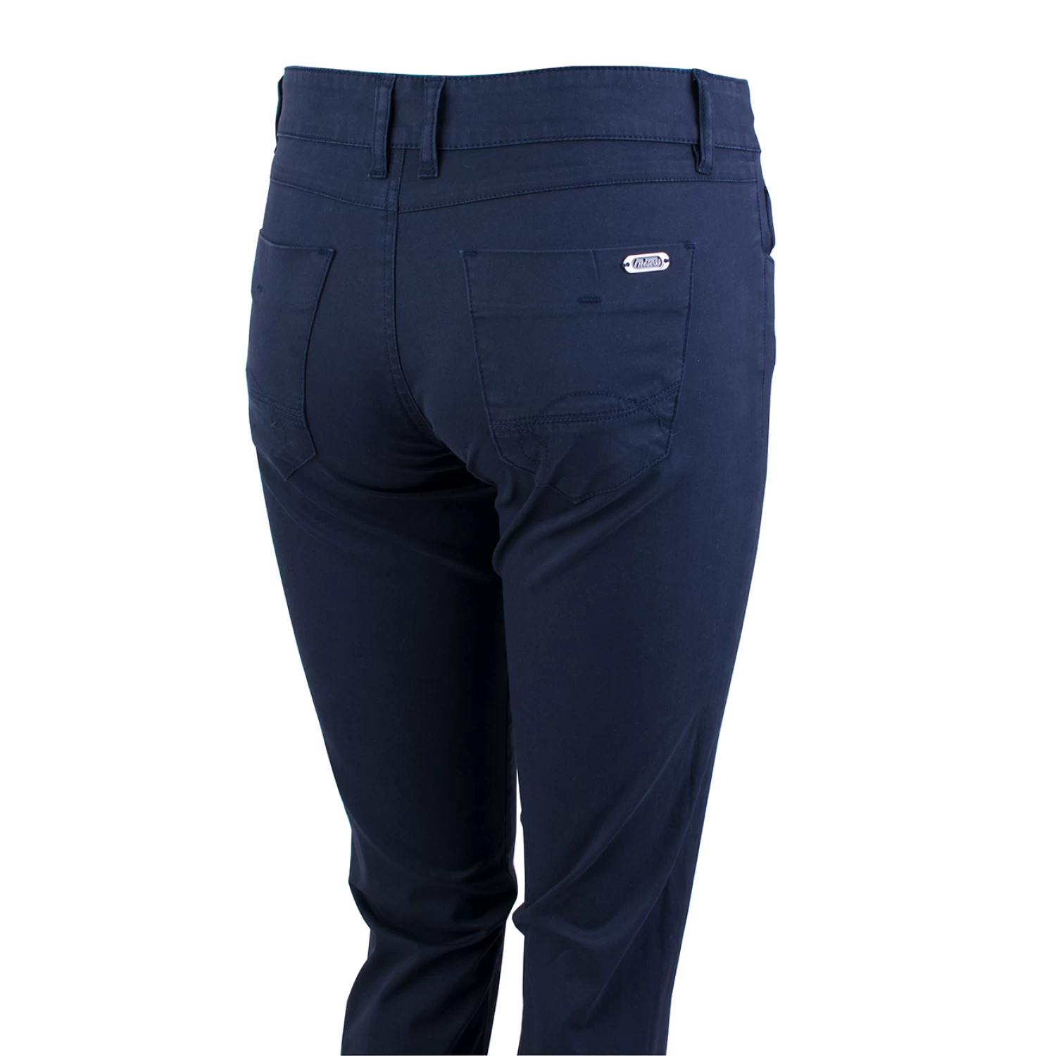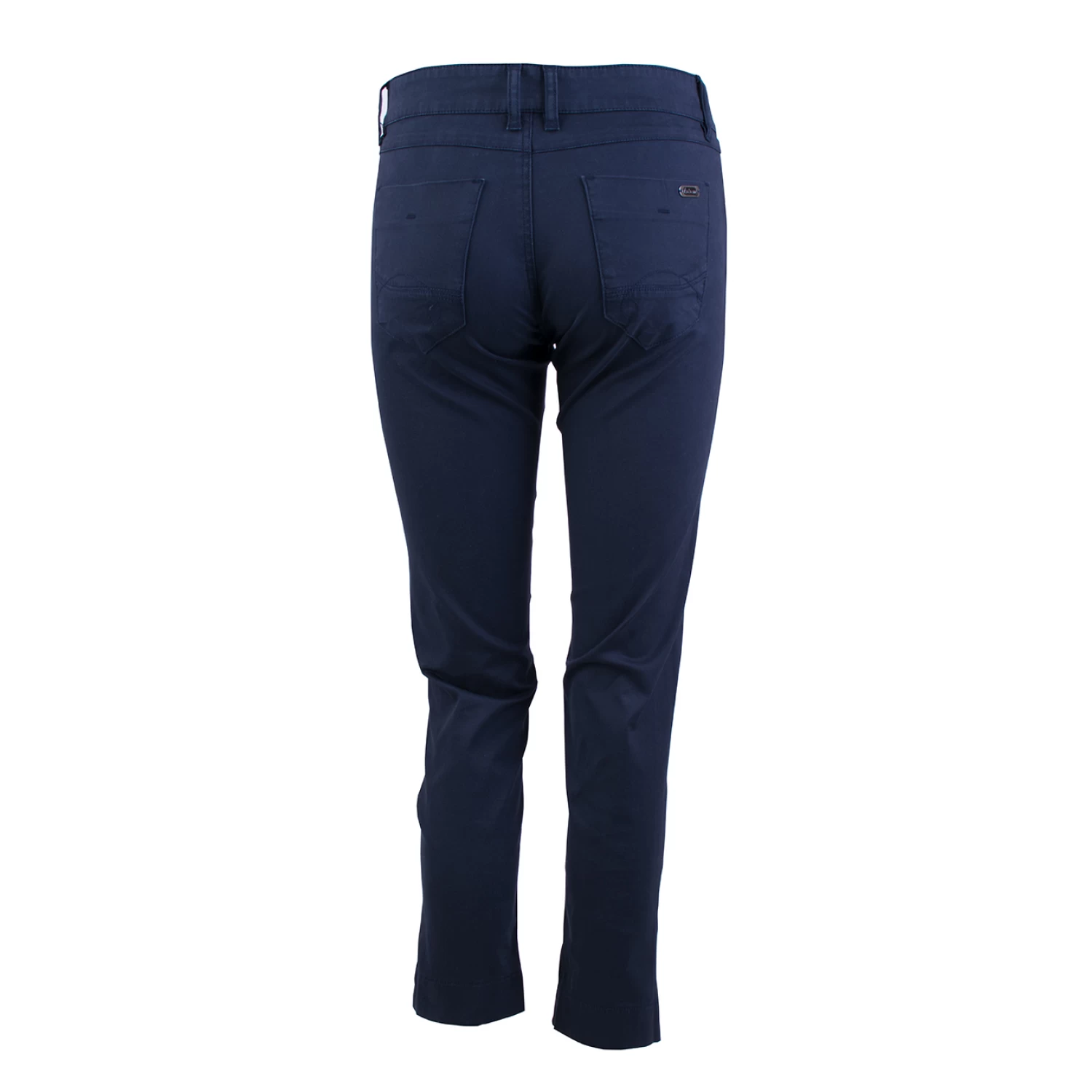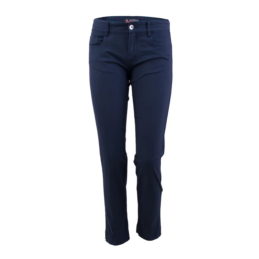 Заменете стандартните дънки със стилен и удобен памучен дамски панталон в тъмно син цвят, който можете да съчетаете с блуза или туника по ваш избор и със сако от същата или друга тъкан. Панталона е с класическа модна линия и са перфектно решение за динамичното всекидневие на съвременната активна жена. Те са изтъкани по иновативна технология, която предотвратява разтягането и избледняването, създавайки ефект на по-елегантна талия, по-строен силует в областта на бедрата и повдигане на ханша.