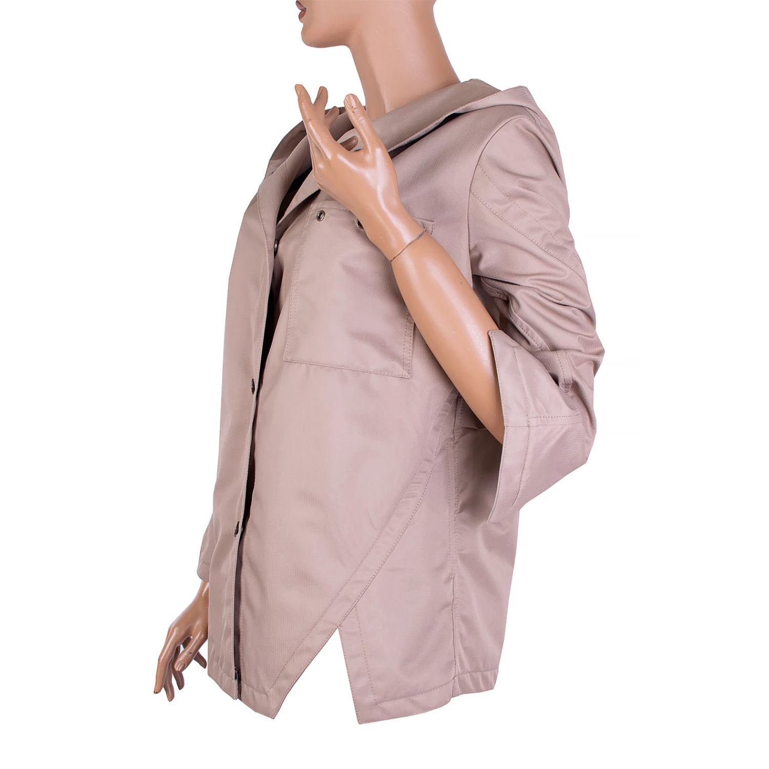 Непромокаемо яке с асиметрични елементи подходящо за дъждовни есенни дни.