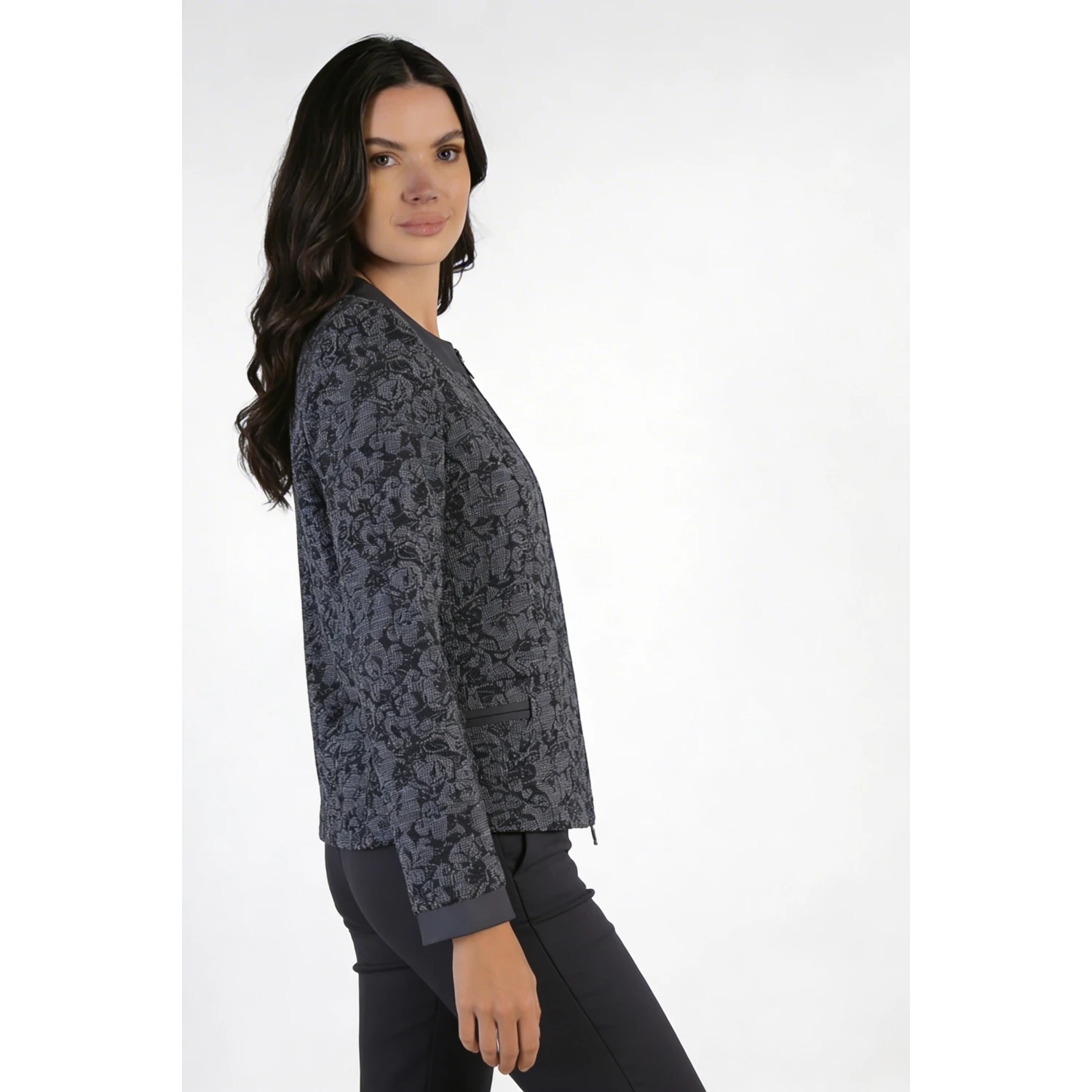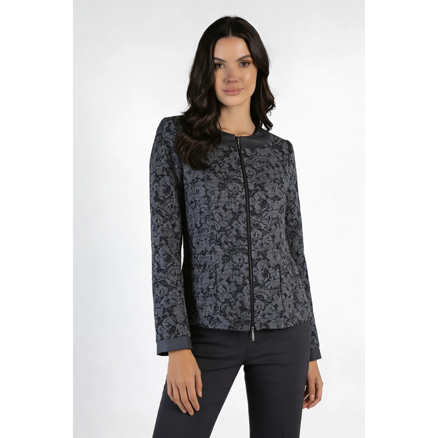 Сакото е основна част от гардероба и визията на всяка успешно реализирана жена. То се асоциира с професионализъм и внушава доверие. Това скъсено и вталено сако със средна дължина е със спортно-елегантен силует. Дизайнерското сако ще се впише перфектно във всяка ситуация и е отличен избор за официална връхна дреха за преходните сезони. То е стилно и удобно, с изчистен силует и се закопчава с цип.