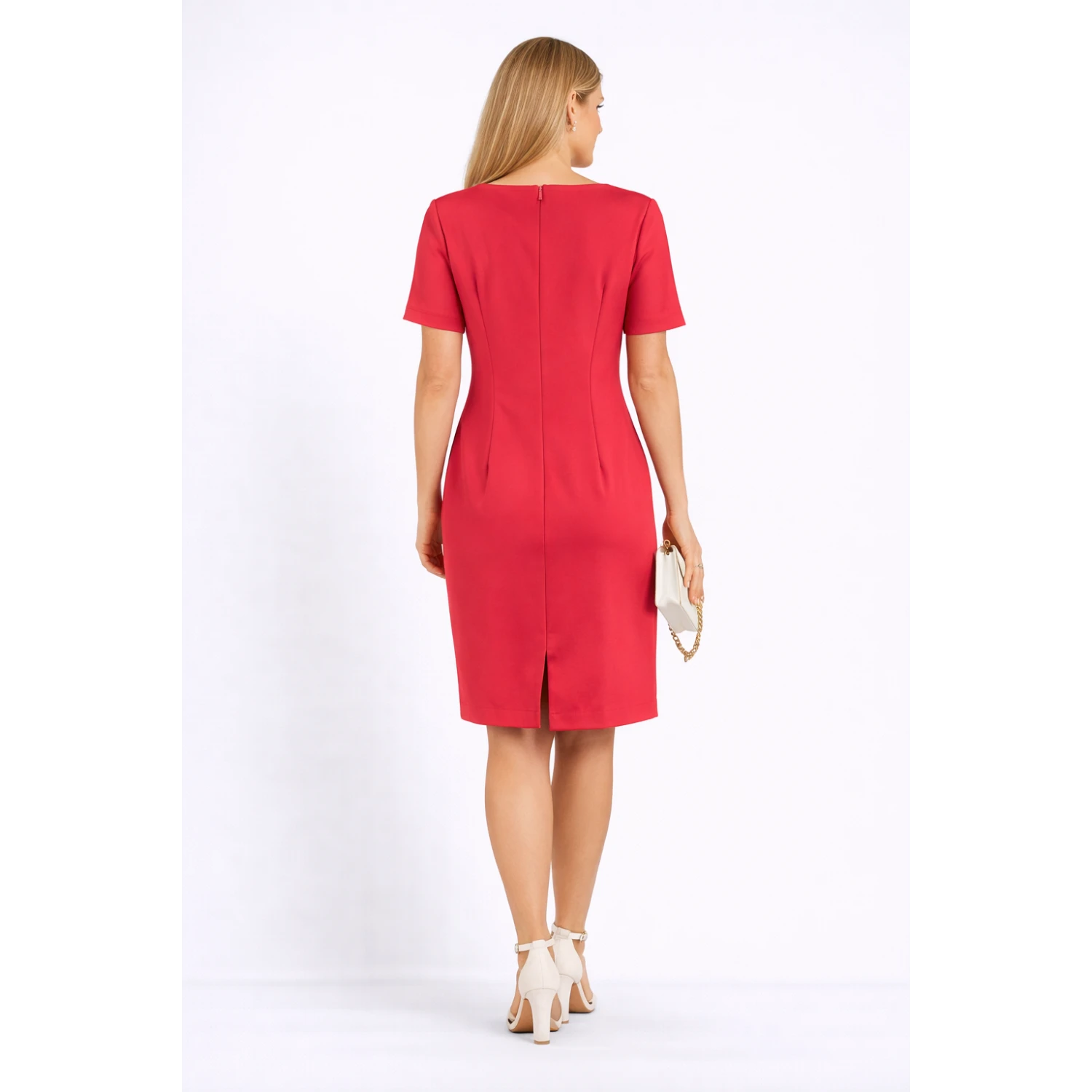 Бъдете неотразими с нашата вталена алено червена рокля, перфектна за сватби и официални събития. С подвижен аксесоар панделка за две визии в една.