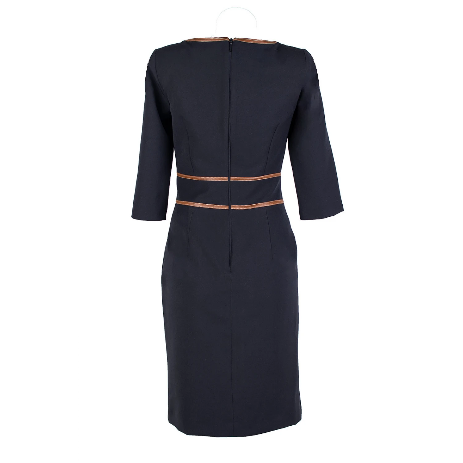 Моделът е с 3/4 ръкав, скрит цип на гърба и вграден хастар, което осигурява комфорт и съвършено прилягане по силуета.
