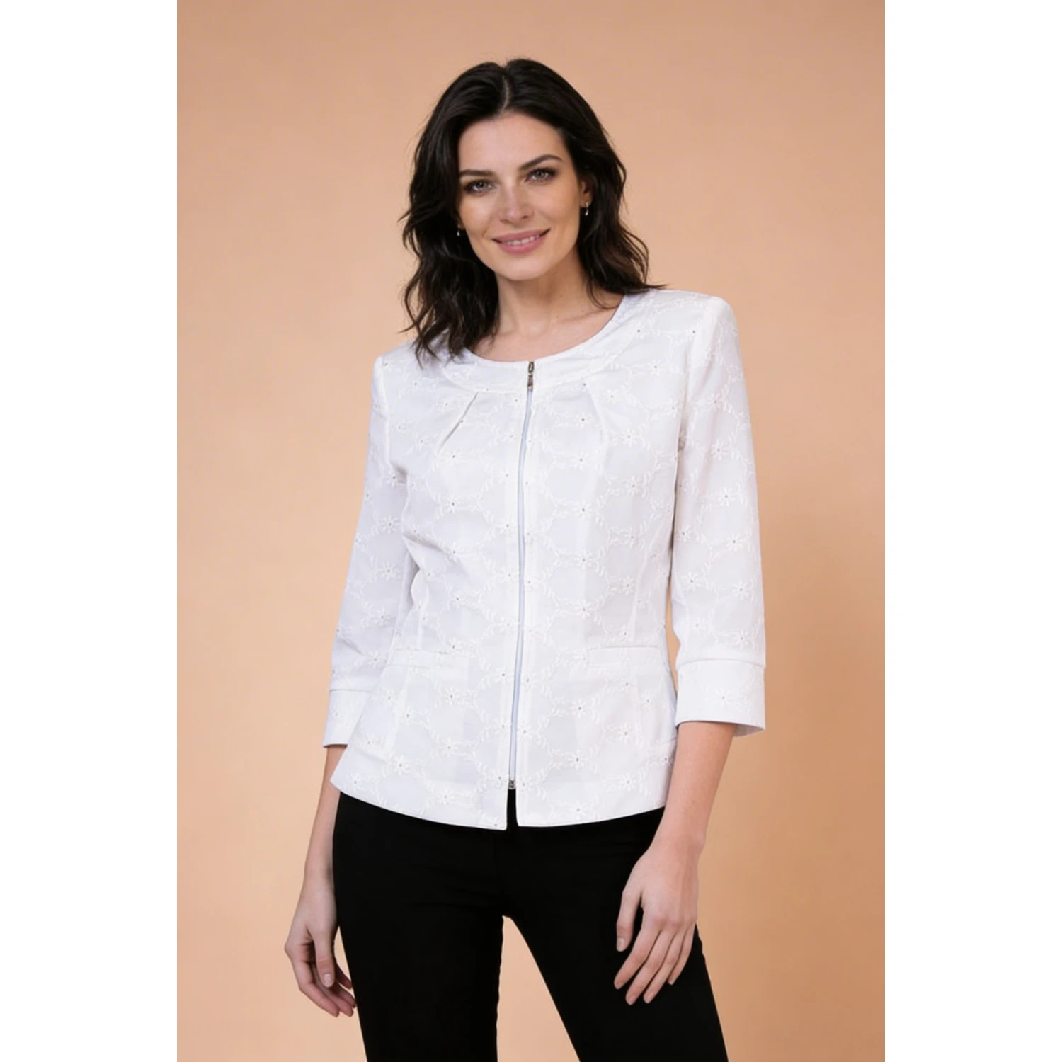 Дамско Бяло Сако с Дантела и Памук 25135 / 2025