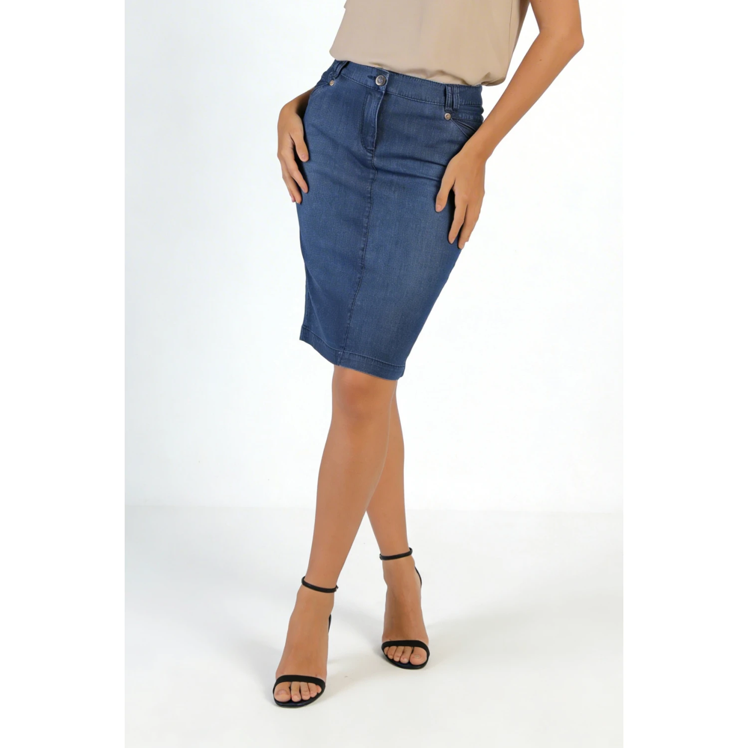 Comfortable and stylish denim skirt made of Tencel – elastic and with a classic cut.