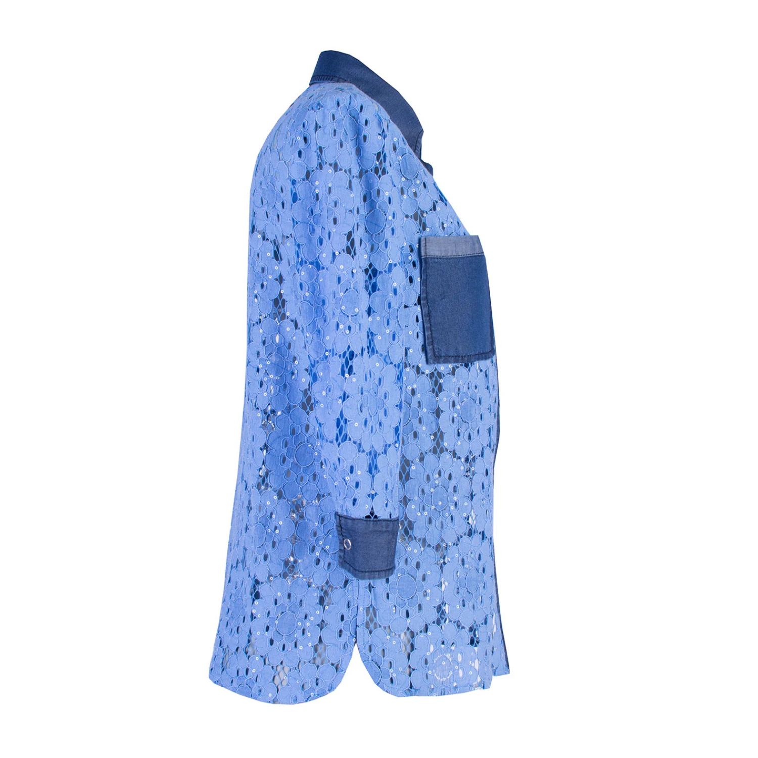 Луксозна Дамска Риза от Синя Памучна Дантела с Тенсел