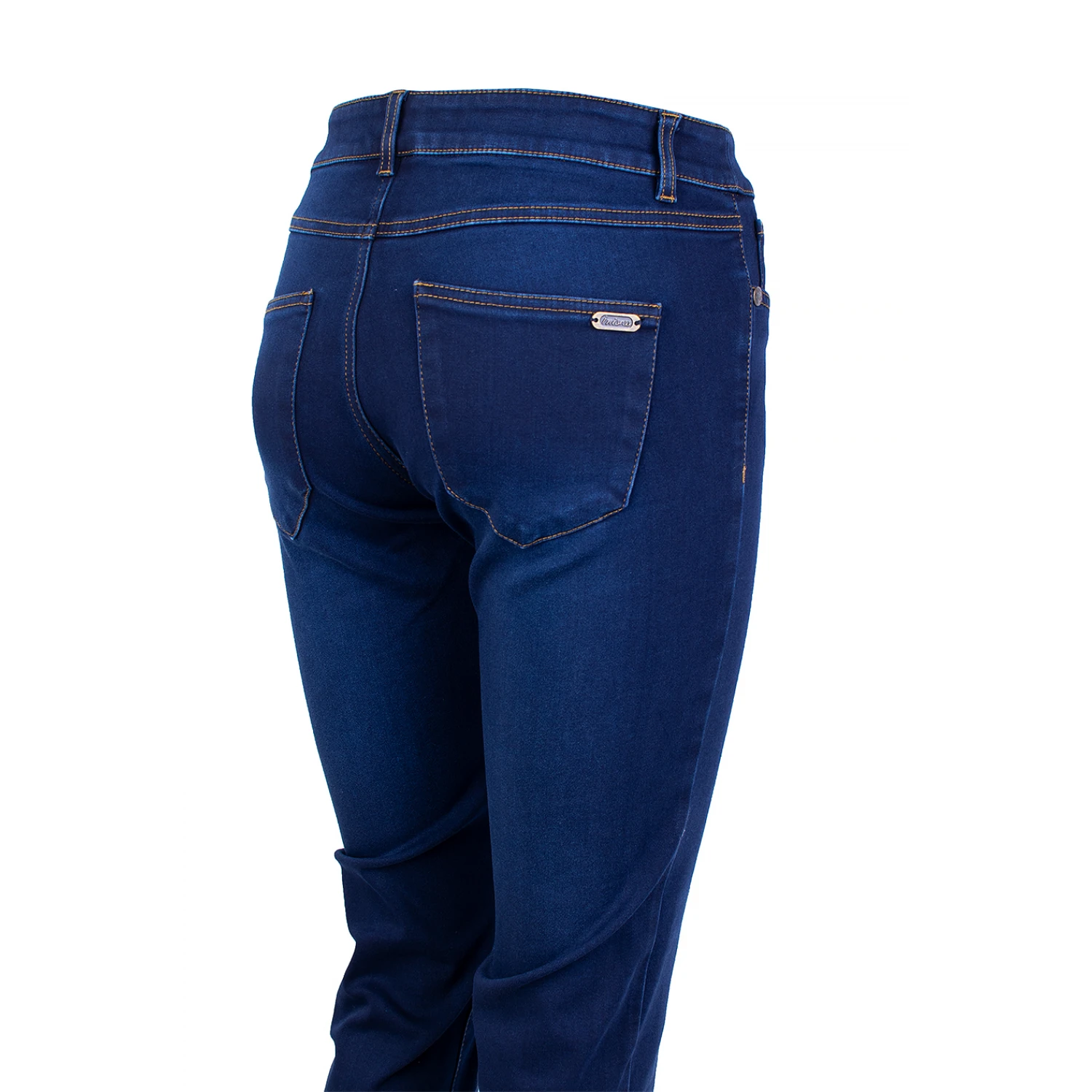 Blugi matlasați albastru închis pentru femei, cu croială dreaptă spre îngustă 25518 / 2025