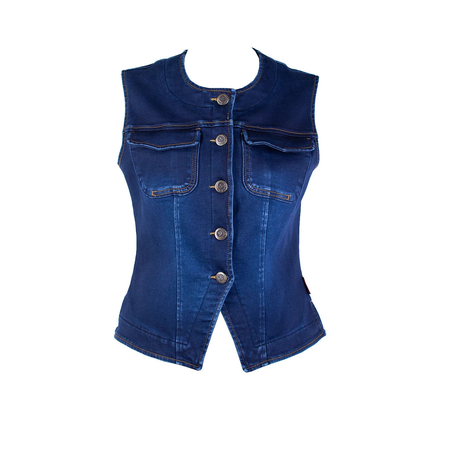 Vestă clasică matlasată din denim pentru femei - Guler rotund