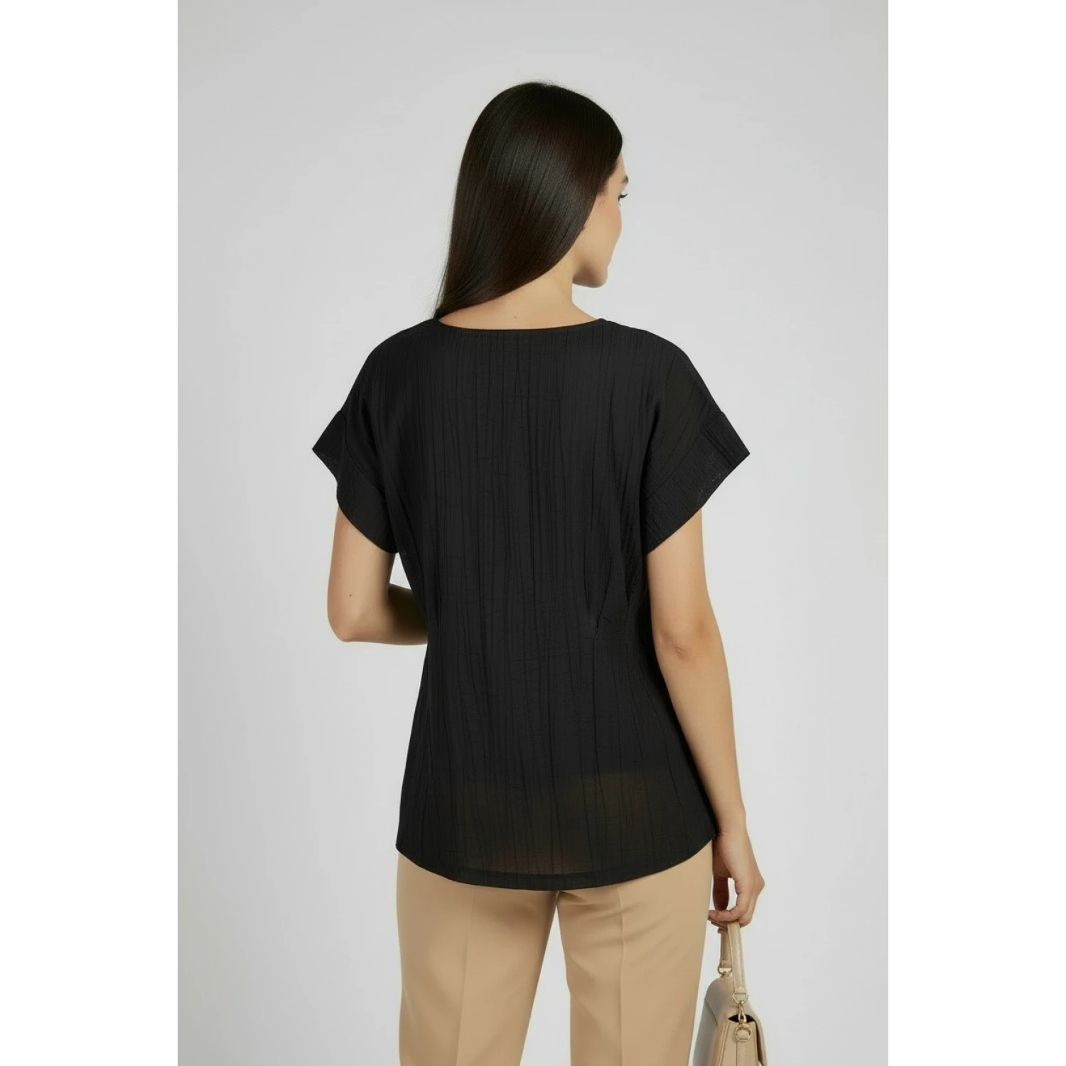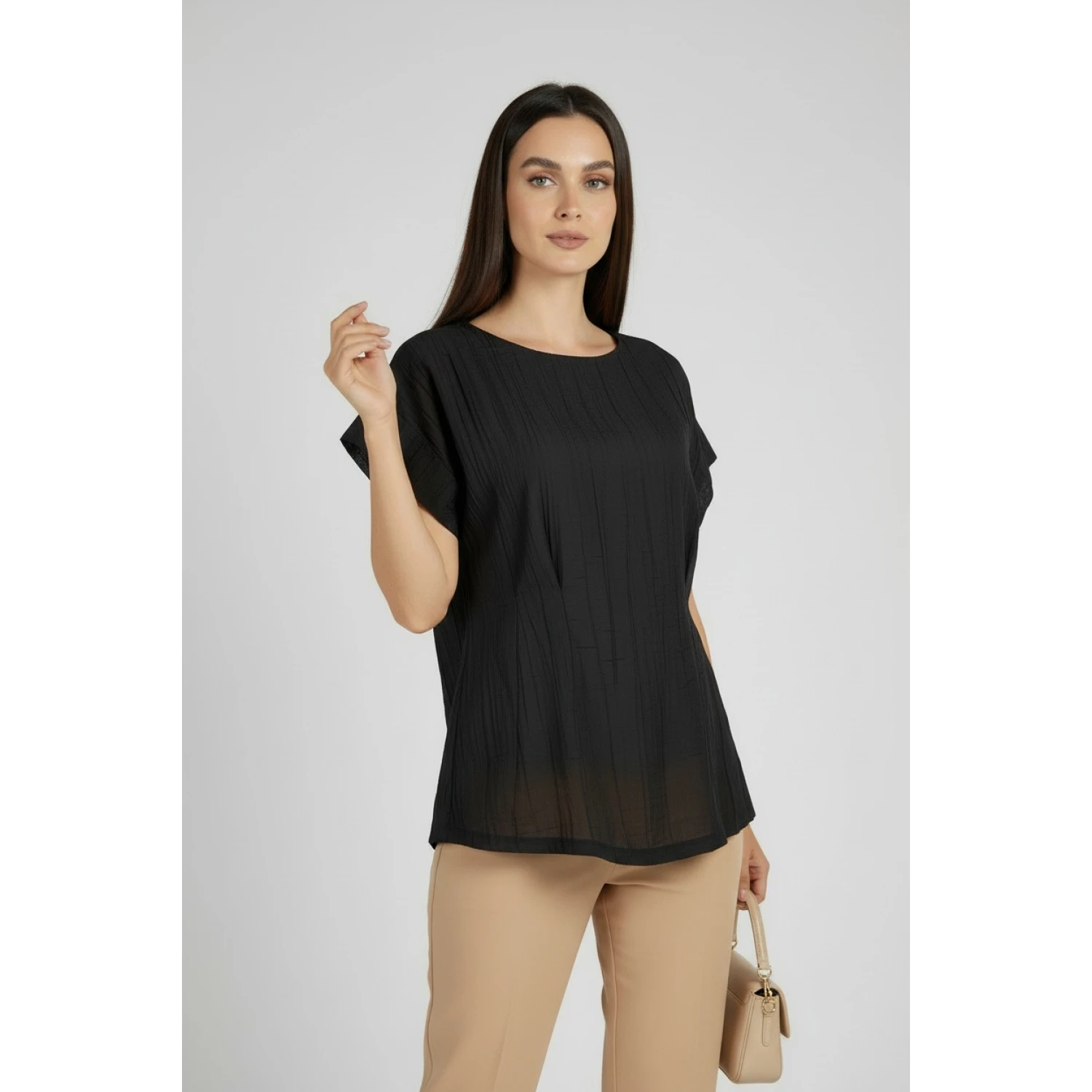 Черна Блуза с Намачкан Ефект – Пролет – Лято 26101 / 2026