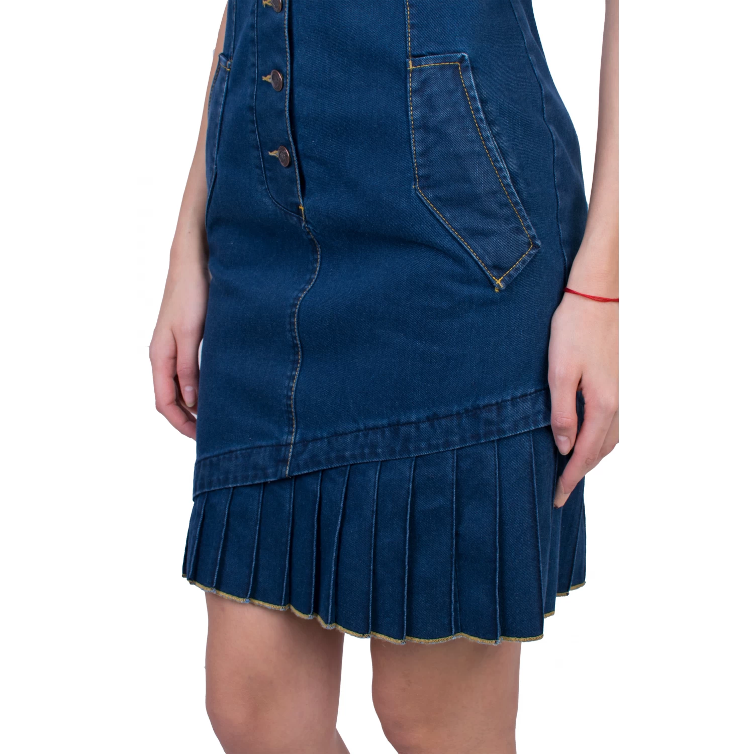 Derin mavi ve diz boyu bu denim elbise ile kendinizi ikinci teninizde hissedin. Bu tasarım sadece son derece şık olduğu için değil aynı zamanda çok pratik olduğu için gardırobunuzda mutlaka bulunmalıdır.