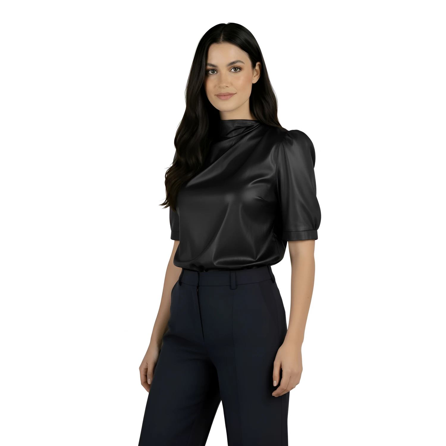 Bu siyah kadın bluzuyla şıklık ve konforun mükemmel dengesini keşfedin. Yüksek kaliteli kumaştan (23% Pamuk, 77% Elastan) üretilmiş olup, hafif kaplama efekti ile modern ve sofistike bir görünüm kazandırılmıştır. Kısa balon kolları şıklık ve zarafet katarken, bluzu hem günlük kullanıma hem de özel günlere uygun hale getiriyor. Kusursuz bir görünüm için 2025 İlkbahar-Yaz sezonunda kot pantolon, pantolon ya da etekle kombinleyebilirsiniz.