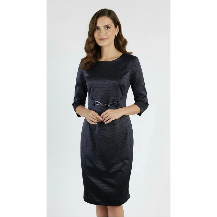 Вталена Черна Рокля с Аксесоар 23130 / 2023